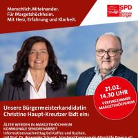 • Tagespflege, neue Wohnformen für Senioren • ambulante und stationäre Unterstützung • Betreuung, Vorsorgevollmacht und Patientenverfügung • Ihre Ideen und Wünsche an Ihre Christine Haupt-Kreutzer und die Kandidierenden der SPD/UB für die Kommunalwahl